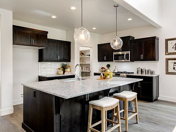 The Owyhee is a perfect example of an efficient design. On the first floor, a study at the entry welcomes you into the living space with an adjoining Flex Room off of the Great Room. Upstairs are 4 bedrooms and 4 bathrooms, with 2 bedrooms sharing a Jack and Jill Bathroom. The laundry room is conveniently located near the bedrooms upstairs. The garage is a 3 car tandem bay with the 4th bay. This home will be ready to move in just in time for the holidays - ask about our Fall promotion for this home. Photo similar to home finishes. This home is tucked in the cul de sac with close access to the green belt and new community pool.