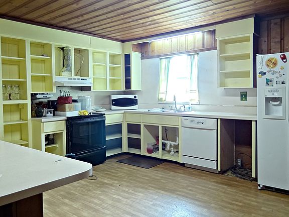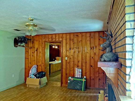 This split floor plan home features rustic wood wainscoting, new carpet in the bedrooms, a fireplace, large kitchen and a 300 square foot screened porch. Needs some updates, but there is lots of potential in this great starter home just minutes from town on a spacious 2.23 acre lot. Fourth bedroom was converted to a walk-in closet for the Master bedroom, but could easily be turned back into a bedroom.