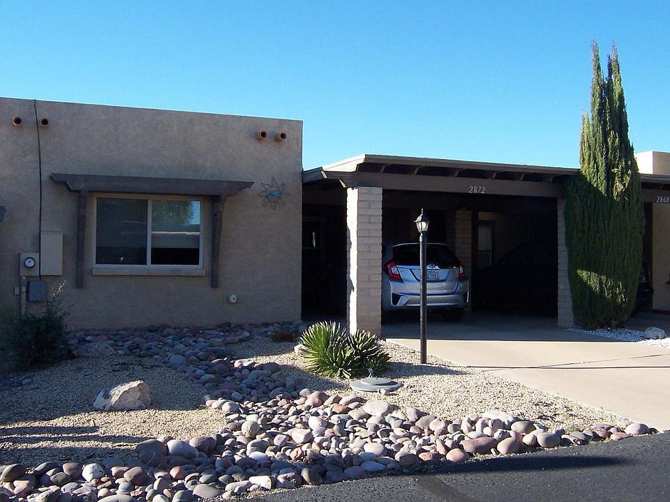 located on quiet cul-de-sac. You can view the Santa Ritas through the oversized front window, new tile floors in livingroom, kitchen, dining area and Hall. Tiled bathrooms. Master bath has large glass enclosed shower. Guest bath has shower/tub combo. This townhome an ideal winter retreat or full time residence. Private, covered patio in enclosed yard. Storage off carport and back patio. New Landscaping front and back 2017. Newer windows, Newer light fixtures. New Carrier A/C & heating system June 2013. (Service contract on system through June 2017). New refrigerator 2017. New GE electric range March 2015. New electric water heater December 2013. Roof recoded 2017. Sheetrock wall in living room and painted 2017. Carport floor coded 2017. HOA $400 annually.