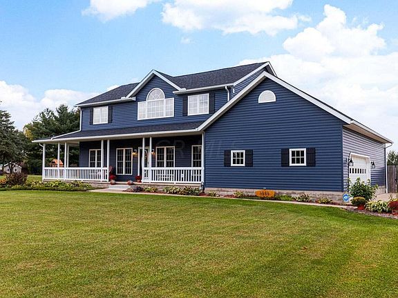 OPEN HOUSE SAT 3/16 from 12-2 PM. This beautiful custom built 2-story is situated on a 3/4 acre lot just outside of Cardington and offers 3 BR's/2.5 BA's, 2500+ sq. ft., updated baths, kitchen, light fixtures and more! The equipped kitchen has black SS appliances, bar ledge w/stone accent, granite counters, tile backsplash, pantry and built in work station. There are formal dining/living rms along w/a convenient 1st flr laundry rm and cozy family rm featuring a stone FP and wood mantle! The 2nd flr offers 3 large BR's, including the primary suite that includes an amazing W/I closet! The FULL basement is ideal for finishing into extra living space. Exterior amenities include a 2+ car garage w/workshop and loft storage, an inground saltwater pool, fenced yard, and new 8 X 16 storage shed