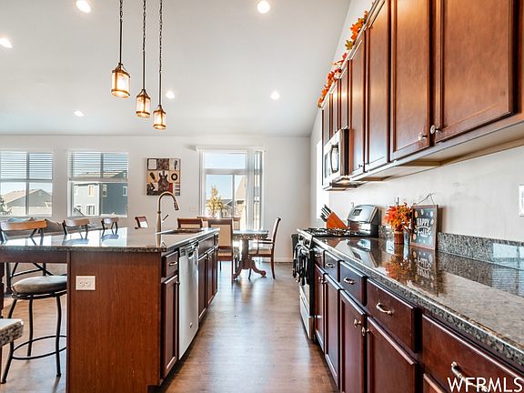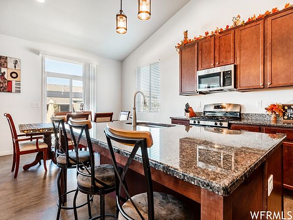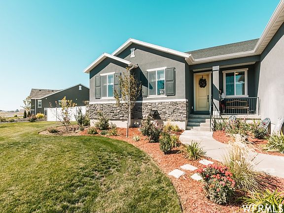 HUGE price reduction! Back on the market! Sale failed due to buyers sale of their home failing. Newly built home by Woodside Homes. With beautiful views of the mountains to the east, this 4 Bed and 2 ý bath single level living home can be yours! The open concept Kitchen and Great room are huge and with the vaulted ceilings make this space feel even larger! Plenty of cooking and storage space make this an absolute dream! Large master bedroom with huge bath including separate tub and shower, as well as large walk-in closet. Downstairs, while not complete, is framed and ready for an additional 2 bedrooms, entertainment room and bath! Built on a large lot, with a huge front and back yard, making this the perfect home for outdoor entertaining! Clinton Pond park is directly across the street for easy access for walking trails as well as fishing. Easy access to Trax for commuting to Ogden or down to Provo!
