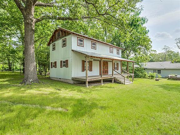Experience the ultimate lake living in this stunning custom home on Monkey Island. This charming ''dog trot'' style home is the perfect lake getaway or rental. With bamboo floors throughout, the main level features a kitchen complete with butcher block counters, a farmhouse sink, open shelving, and an antique Chambers stove. The living room and 1/2 bath, as well as washer and dryer hookups in the laundry closet, provide convenience and comfort. Upstairs, you'll find two cozy bunkhouse-style rooms and a large main bath that is currently undergoing renovation and will be completed soon. The expansive covered porch is the ideal spot for porch swings and creating lasting memories. This Grand Lake oasis also offers a fire pit and outdoor shower. Close to Shangri-La and all their amenities.