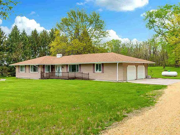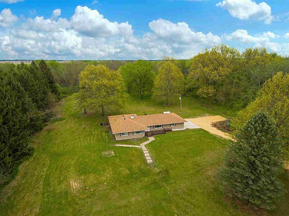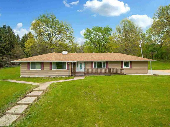 Dreamland Acres...this can be your dream location..spend cool summer nights on the 23x9 front porch overlooking the pond & taking in this peaceful setting! Nestled on 15+acres sits a sprawling ranch home with many updates and amenities & a 80x30 steel pole barn. Freshly painted with new flooring on the main level this home is move-in ready. The bright & spacious eat in kitchen boasts a large amount of cabinets & counter space, large window over sink & full view door to 14x9 deck & additional patio for entertaining. Main floor has formal dining room, living room with french doors, office w/built in shelves & central vac system! Master suite features private 3/4 bath & 2 closets. Expand into the finished basement with 'non-conforming' 4th bedroom, family room with wood burning fireplace & rec room with built in bar, large craft room/office, storage & workshop areas with cellar door to exterior. NEW HVAC 2018! If you want privacy, a country setting & room to expand...this is it!!