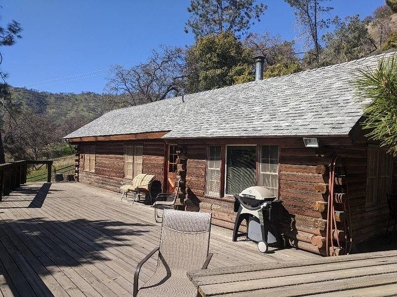 Adorable log home on a gorgeous usable, fenced & cross fenced 4.94 acres just 15 minutes from the city! This Clovis foothill home is near Humphrey Station & offers privacy, views, a huge barn/shop with a finished loft above, a 2 stall pole barn and a huge riding arena. This diamond in the rough needs some deferred maintenance but is completely livable. Being sold as is. Any lender req'd repairs to be done by buyer. There's so much charm inside and out. There's a rock retaining wall and a rock hearth behind the wood stove.