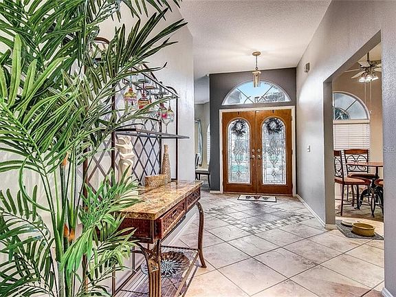 In the flourishing heart of Wesley Chapel, this gorgeous 4br/2ba/3cg + POOL eagerly awaits its new owners! Nestled in the Arbors at Meadow Pointe, beautiful landscaping and a custom leaded glass double entry door welcome you upon arrival. This home has been meticulously maintained and pristinely UPDATED throughout. Notable interior features include; diagonally laid tile flooring, a cozy WOOD BURNING FIREPLACE, VAULTED CEILINGS, CROWN MOLDING, and more! The EAT-IN kitchen was completely REMODELED in 2017 and showcases white cabinetry, STAINLESS STEEL appliances, CUSTOM GRANITE countertops, and a GAS range. The master suite features a beautiful white washed porcelain tile floor, sliding doors out to the pool, TWO WALK IN CLOSETS, and a recently remodeled (2019) en suite bath that will make you feel like you are visiting a spa! The guest bath was also remodeled at the same time and has the same spa like feel. The spacious inside laundry room with washer and gas dryer, utility sink and extra storage is just off the 3 car garage with storage, hurricane braced garage doors and garage door openers. The lushly landscaped lot with private FENCED backyard invites you to relax on your screened lanai and enjoy the covered seating area, 16 x 30 heated swimming pool and flagstone stepping stone rock garden seating area... perfect for an outdoor fire pit or BBQ grill! The Meadow Pointe community has amenities that include A-rated schools, a resort style pool, tennis, racquet ball, and playgrounds! The low yearly CDD is included in the taxes. There is NO HOA fees which makes it an even more desirable place to live! Meadow Pointe is conveniently located in New Tampa, close to great shopping at Wiregrass Mall, dining, golf, schools, with easy access to Downtown Tampa!