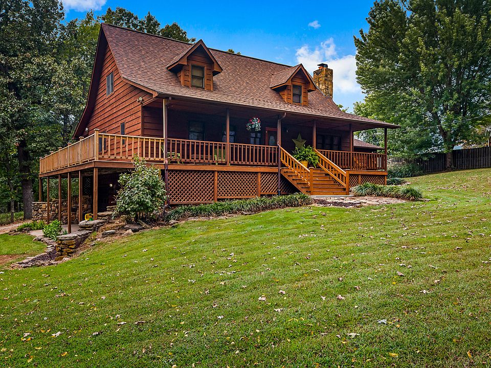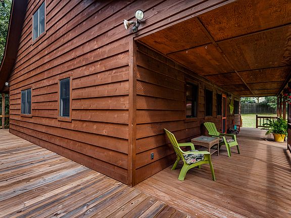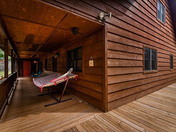 - Features Exterior: Large Trees, Porch Covered, Wooded, Deck, Landscaped, Workshop Area, Asphalt Parking