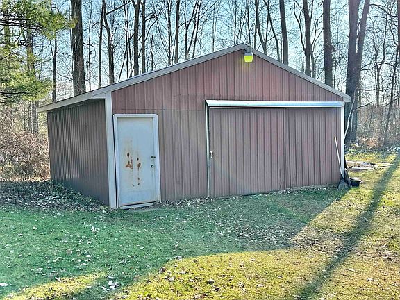10.44 acres of wooded paradise!! This property features beautiful woods with an abundance of wildlife, lg groomed path to the back of the property, a 180x90 pond that is 15ft deep, swim, fish, or lay on the sandy beach! There is a 24x24 pole barn with electric for all your storage needs and a 1 1/2 car garage with 110 and 220 will make a great work shop. The Ranch Style home features an open floor plan with the kitchen having 2 islands that will seat at least 8, electric stove, dishwasher and plenty of cupboards and counter space! Open dining area to the kitchen and living room. Beautiful stain glass lighting, vaulted ceilings, ceiling fan and gleaming laminate floors. The living room has a sliding door to the deck that over looks the pond and woods. 3 bedrooms, the master has an en-suite with a unique trough tub, large walk-in closet with custom closet organizers, wood floors, and cedar wall and ceiling. 2nd full bath has a custom tile lg walk in shower, and tile floors.Basement includes a brand new furnace, washer and dryer, water heater, updated electrical, sump pump, and a work shop area. This home is maintenance free vinyl siding, propane, septic is behind the home to the east main cover is outside the back door. Well is on the west side of home, well head is under the lg white stone flower pot.