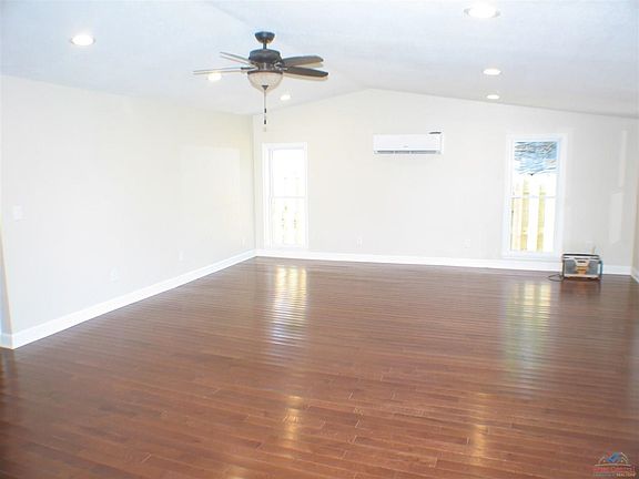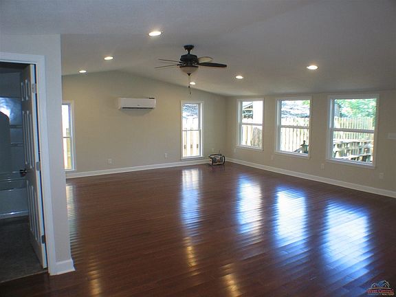 Gentle slope, dock to be installed soon. 2 bedroom, 2 bath, granite, hardwood, metal roof, vinyl siding. Just like new. Large deck on lake side. Beautiful mature trees in front yard.