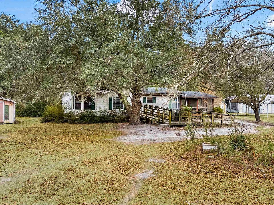 Nestled on 10.24 acres of beautiful land, this well-positioned double-wide property offers the perfect blend of rural tranquility and convenient access to the coast. Located just 40 minutes from the ocean, it allows you to enjoy the best of country living without sacrificing proximity to beaches and coastal amenities. The home features 2 spacious bedrooms and 2 full bathrooms, with a functional floor plan that is ready for your personal touches and updates. Enjoy the expansive screened porch, ideal for relaxing or entertaining while surrounded by nature. Additional outdoor spaces includes a carport, a shed, and a metal building. The metal building is approximately 30x30 with an estimated 8-inch thick concrete floor making it great for heavier projects or storage. The property offers both privacy and plenty of room to spread out, making it a rare find. Whether you're looking to create a peaceful retreat or establish a home with room to grow, this property is a fantastic opportunity. Home needs work. Sold as-is, where-is. Cash only. Rest easy knowing you are only a short drive from medical centers, doctors’ offices, pharmacies, banks, post offices, and grocery stores. Square footage is approximate and not guaranteed. The buyer is responsible for verification.