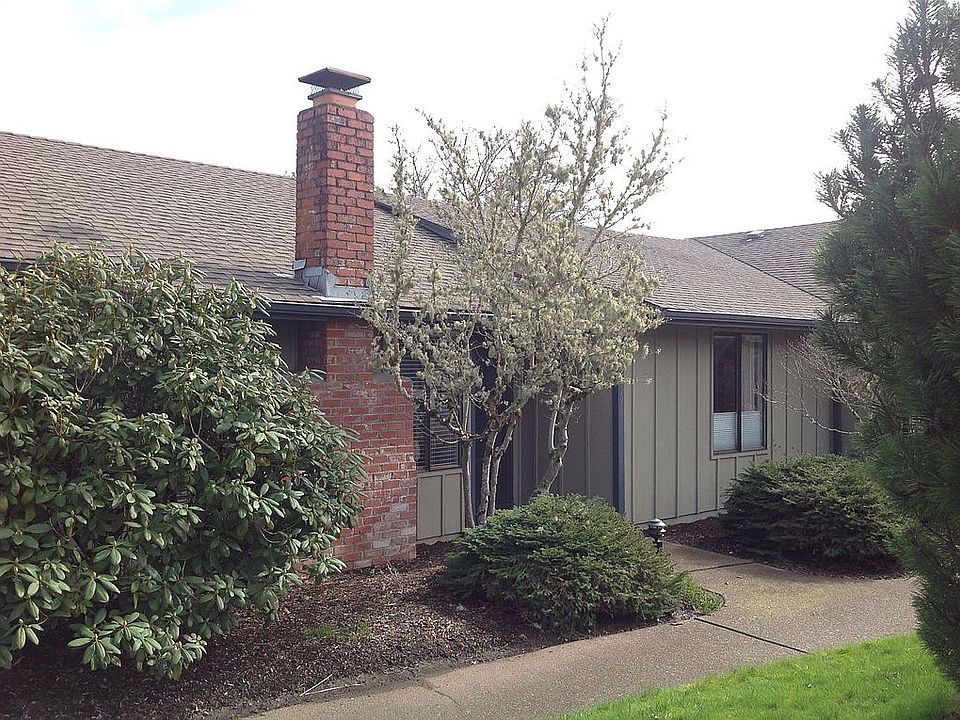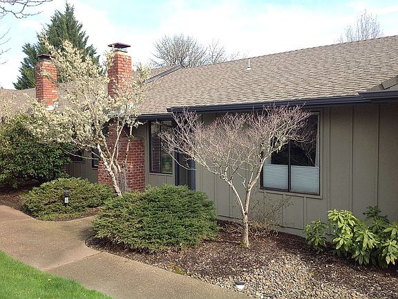 Immaculate & well cared for single level Timberhill townhome. Two bedrooms & 2 full baths. Carpets, laminate flooring, electric FP, slider to private patio with small garden off dining room, inside laundry & 2 car garage. Stove, fridge, washer, dryer in home. HOA includes landscaping, pool, club house,, water, sewer, garbage. Across the street from Timberhill Athletic and Tennis clubs. Situated on a small stream, and has a new paver patio.