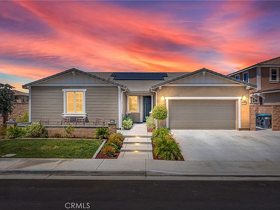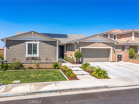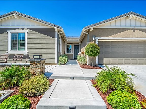 Stunning Single-Story Home in the Remington Place community of Menifee. Come and discover the epitome of modern living in this exquisite single-story residence located on a peaceful cul-de-sac. 28746 Lookout Circle is designed with an open floor plan that seamlessly blends style and functionality, making it perfect for both relaxation and entertaining. This home boasts an airy and spacious layout, creating a welcoming environment that flows effortlessly from room to room. Elegant and durable tile plank flooring runs throughout the main living areas, providing a sleek and modern aesthetic. The open kitchen is perfect for culinary enthusiasts and features stainless steel appliances, a large center island with a breakfast bar, and stylish pendant lighting. The kitchen is open to the generous sized family room w fireplace and upgraded cabinetry w quartz countertops for additional storage. This large open area is perfect for gatherings to make memories. Thoughtful upgrades and contemporary finishes add a touch of sophistication, ensuring every detail complements the home’s design. Some of these include upgraded light fixtures, 2" wood shutters on all windows, ceiling fans throughout and a 'flex' room that can be an office, home schooling area, workout or craft room. The spacious primary bedroom offers a peaceful sanctuary to rejuvenate from the day. There is a bedroom w ensuite full bath at the front of the home and 2 other generous sized bedrooms served by the hall bathroom w dual sinks and adjoining walk in closet. Step into the landscaped backyard, complete with an Alumawood covered patio—ideal for outdoor dining, relaxation, and enjoying California's beautiful weather year-round. Situated on a quiet cul-de-sac, this home offers a tranquil setting with convenient access to local amenities, shopping, dining, and top-rated schools. Energy efficient features include PAID solar, tankless water heater and pre-wired for smart home technology. Whether you're hosting a family gathering or enjoying a quiet evening at home, 28746 Lookout Circle offers the perfect blend of comfort and elegance. Don’t miss your chance to experience the charm and convenience of this remarkable property. Schedule a showing today and make this dream home yours!