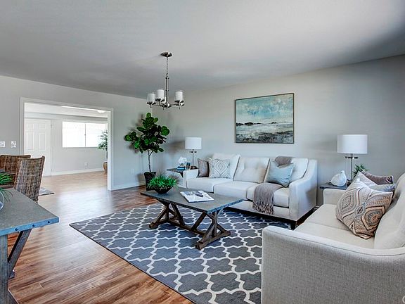 Highly upgraded and professionally designed modern single level two bedroom home located in Sun City Civic Association a 55+ community. This gorgeous home has just being completely remodeled. Upgraded flooring, upgraded baseboards, and new lighting fixtures throughout the home. Highly desired open concept layout with the kitchen, dining area and family room in one great room. The kitchens offers stainless steel appliances, upgraded stone counter tops, custom cabinets, recessed lighting and back splash. Ample natural light flows throughout the home.The living room opens to a large covered back patio ideal for entertaining. Separate laundry room offers tons of storage plus a sink. Great association amenities include clubhouse, banquet facilities, several pools/spa, sports courts, private golf course, activity rooms, & common RV parking. Don't miss the attached two car garage and check out the virtual tour.