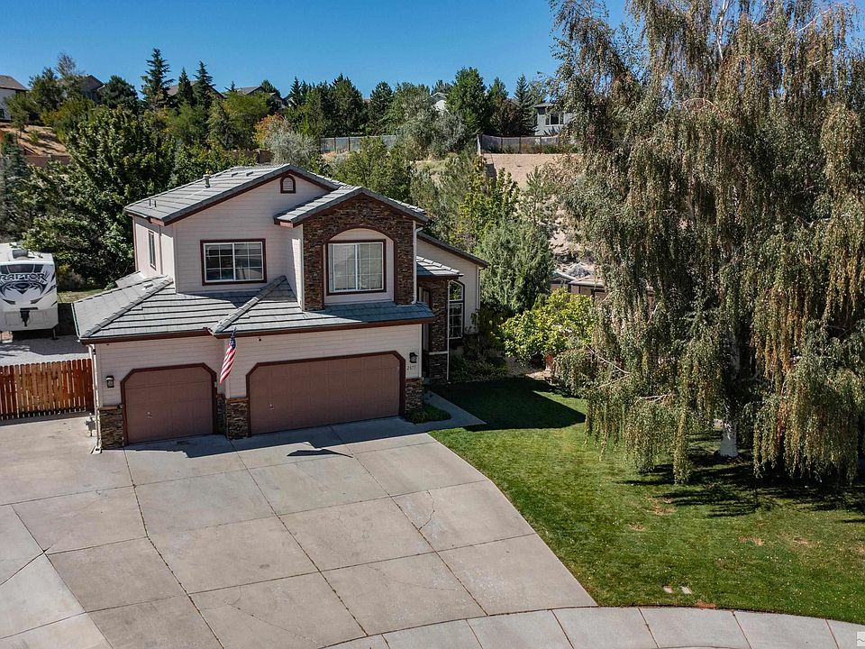 Welcome to this spacious 4-bedroom, 2.5-bathroom home nestled on one of the largest lots in the community! Located on a quiet cul-de-sac with no HOA, this two-story home offers an oversized 3-car garage and a large RV parking pad. The front yard boasts lush green grass, while the private backyard features mature trees and no rear neighbors, providing a peaceful retreat. Inside, all bedrooms are located upstairs, including the primary suite with a walk-in closet, dual sinks, a separate shower...(cont.), and a relaxing tub. Downstairs, the kitchen seamlessly opens to the family room, creating the perfect space for gatherings. The dining room and living room showcase high ceilings and abundant natural light. The large laundry room offers great potential for a mudroom and additional storage. Zoned for highly desirable schools, this home combines comfort, convenience, and plenty of room to make your own.