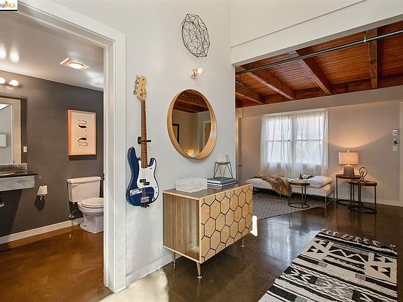 This very cool and artistic Loft is the one you've been waiting for. 16' ceilings - Check, polished concrete floors - Check, secure parking and a private outdoor patio - Check Check Check! Located in a neighborhood filled with artists and just a short stroll from the Oakland Estuary and all of the goodness on Park Street in Alameda, this loft has it all! The Soaring ceilings are flanked by southern facing windows which drench the space in light. The open concept gives a livable yet truly industrial feel. The private outdoor patio has ample space for lounging, grilling or just reading a book in the sun. The kitchen and both bathrooms have been tastefully updated and the first floor features a bonus space which doubles as a second bedroom, a home office or more. Within just blocks are both the Fruitvale BART station and an SF express bus pick up making a commute into the city a breeze!
