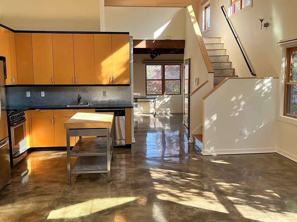 IF YOU ARE A PROPERTY MANAGER please do NOT call to solicit services. Waterfront Corner Unit Live/Work Loft - 25' ceilings - 24+ windows/skylights TONS of sunlight - Private patio with water view, plants, bike storage rack - Granite countertops, concrete floors - Gas stove and Samsung Fridge w/ice, water - Dishwasher, Track lighting, ceiling fan - In-suite laundry or hookups to use own machines - TONS of storage; 2 walk-in closets, multiple cupboards, and cabinets - Glass display shelves - Unlimited hot water with high-end tankless unit + recirculator = 2 sec for hot water - Upgraded bathroom fan clears entire room's air in 3.2 sec = no shower fog, smell - 3' thick concrete, an air gap between walls. Quiet & soundproof unit Enjoy loft living at Oaktown Loft. Luxury accommodation in a great neighborhood. A 10 min walk from BART, as well as hundreds of restaurants, bars, and shopping in Alameda. Sit and relax near the fire pit or the fountain and unwind after work with the neighbors. We have a great community and a ton of monthly events including Bocci Ball tournaments, wine tastings, potlucks, and just hanging out in the courtyard. For more info and to arrange to come to see the place visit OaktownLoft.com Rent this month and get FREE INTERNET with Wi-Fi + 2x Nest Cloud Recording Outdoor Security Cameras. See OaktownLoft.com to book a tour and for more info!