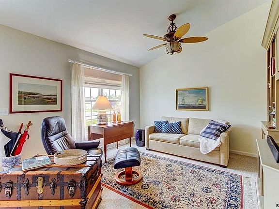This home is gorgeous with loads of amenities. Vaulted ceiling in the living room with huge built in bookshelves. Dining area, lots of counter space and breakfast island area, crown molding, rear family room with french doors that lead to a 4 season room. Small shed attached to the home in the rear. patio area and a terraced landscaped area. HOA fees are low...$40/month includes mowing/snow removal. You own the land here. 55+ Ranch villa