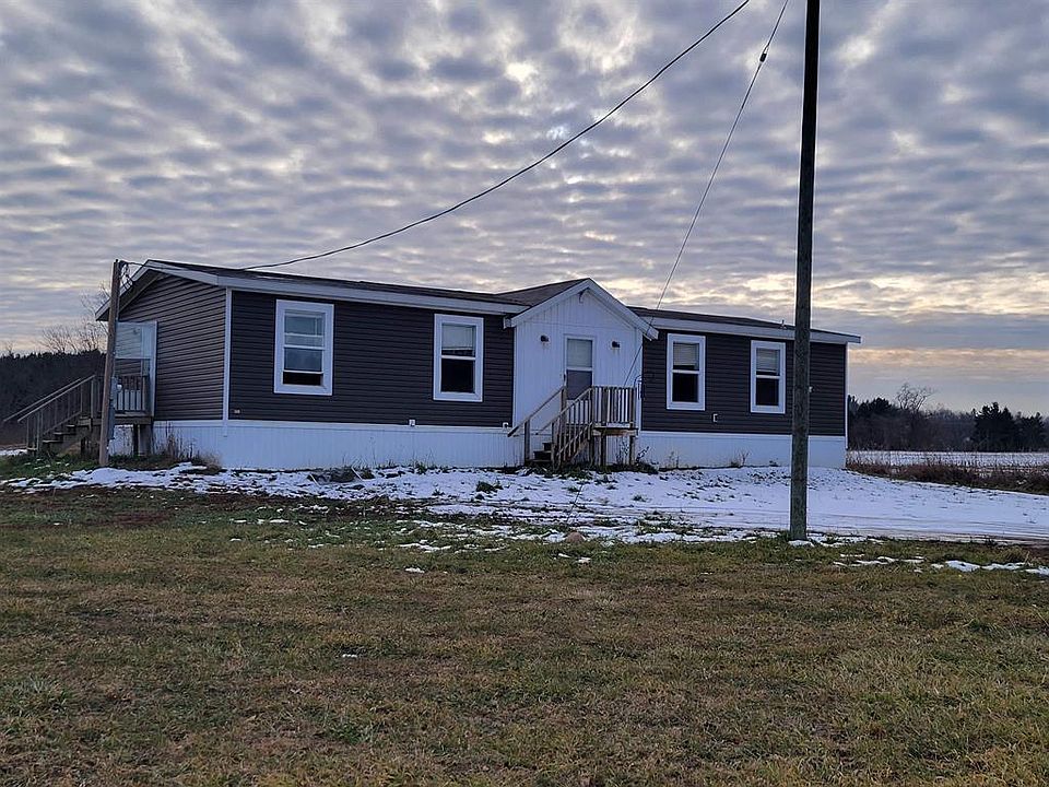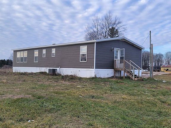 Country living on Hilts Rd in northern Gladwin County. Not far from Lake Lancer (house is not in Sugar Springs POA) to launch the boat and fish and not far from state land to SXS. Short drive to Houghton Lake also. 2020 built manufactured home on piers with skirting sitting on 1.1 acres. Spacious home featuring rustic/country decor. Large open kitchen, dining & living room. Kitchen has a large island. Living room with many windows taking in the backyard view. Primary suite located on the opposite end of the home from the other 2 bedrooms and full bath. Laundry room is near the side entrance which is a great spot to build a garage possibly. 5'' well & central air.