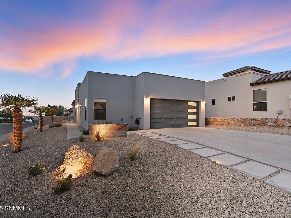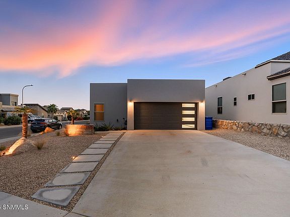 This beautifully curated home perfectly blends style and sophistication with its modern art deco accents and gleaming finishes. Featuring 3 bedrooms, 2 baths, and 2 car garage this home surely amazes with contemporary design. Open air grilling area with built-in gas grill and seating perfect for dining al fresco and entertaining friends, family, and neighbors. Soaring ceilings and lots of natural light from many windows and skylights. The enchanting charm of this home is immediate upon entry and further delights as you walk through a well appointed kitchen with plenty of space. Open floor plan leads to the generously sized living area graced by well curated artistic lighting fixtures, walls with lit nichos, and a gorgeous fireplace with adjustable custom lighting. Well sized bedrooms. Plenty of storage. Huge primary suite closet. Very unique corner lot. Elegant exterior accent lighting showcases home amazingly at night! Heartwarming sunrises and sunsets. Simply, WOW! This one will go fast. Call today!