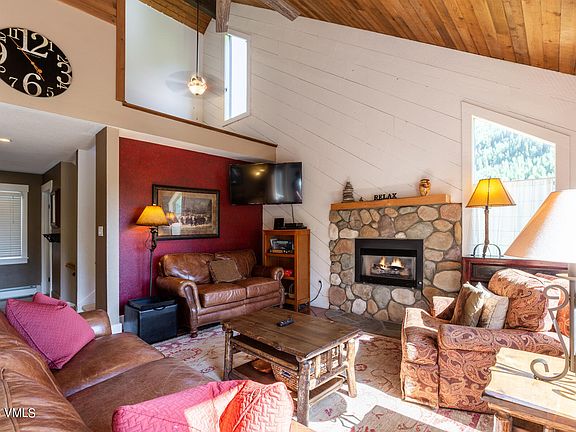 Coveted corner unit with vaulted ceilings, open floor plan, breathtaking sunsets from the deck or from inside the cozy mountain home from the large windows facing west. Fully furnished and turnkey, some of the many features include new carpets (installed Fall 2021), the addition of a new half bathroom and laundry closet. Enjoy outdoor living with a grill and new patio table, or relax with a book as you cozy up indoors next to the fireplace. Reserved parking for 1 and guest spaces available. Sidewalks are heated throughout the complex. Close proximity to Town of Vail bus, local park, and the fabulous Booth Falls hiking trail.