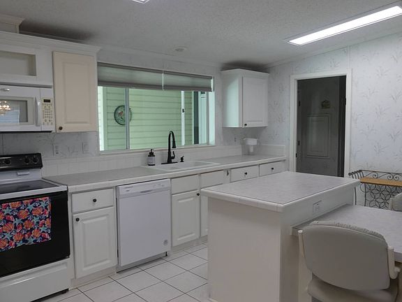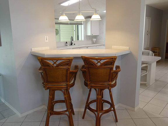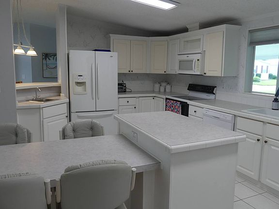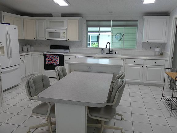 Bright and open split floor plan. This 1997 Palm Harbor Home is lovely, it has 1792 Square feet and features 3 Bedrooms/ 2 Baths and a Master Bedroom Retreat/Den. There is laminate and ceramic tile throughout, separate laundry room. The kitchen has a snack bar with bar stool, center island and another snack bar with plenty of cabinets and counter space. The 2 guest bedrooms have walk in closets, the guest bath has a tub/shower. Master bedroom has a large walk in closet and the master bath features double vanity, garden tub, walk in shower and linen cabinets. The master retreat is off the master bedroom and can be used as a den or another tv room. There is a large living room/dining room with built ins. The lanai has vinyl windows and is located to the rear of the home. There is also a new metal roof 2021. The golf cart has new batteries and tires, new high boy commodes, new dishwasher, freshly painted. Home is sold partially furnished with a golf cart. Contact the Sales and Information center for showing requests