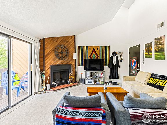Welcoming warmth abounds in this Gold Run residence. Nestled in a picturesque setting facing Boulder Creek, this unit offers scenic views and privacy. Soaring vaulted ceilings creates a light filled and airy ambiance throughout. Sliding glass doors open to a large balcony - the perfect setting to enjoy outdoor relaxation with views of lush treetops and peek a boo mountain view . The dining area extends easily into the kitchen featuring generous cabinetry and a trash compactor. Two sizable bedrooms with neutral carpeting and ample closet space. Two stylishly remodeled bathrooms feature contemporary fixtures. An added convenience, a laundry area includes a washer and dryer set. Parking is effortless with a designated spot located directly in front of the front door. Community amenities include access to a gym, volleyball court and swimming pool. Enjoy a coveted location with very close proximity to the CU Boulder campus, Naropa Campus and the 29th Street Mall.