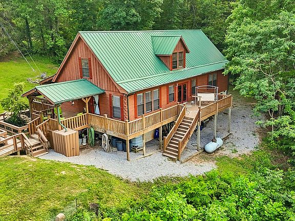 Looking to get away from it all, this charming 3 bed 3.5 bath cabin is nestled in the woods, offering, peace, privacy, and breathtaking bluff views of the valley below. Situated on 5.79 acres, this 2700 sqft home is the perfect blend of rustic charm and modern convenience located just 5 mins to the nearest interstate exit. Step onto the expansive wrap around porch and take in the panoramic scenery, ideal spot for morning coffee, evening sunsets, or simply soaking in nature's beauty, Inside the open-concept living area features wood accents throughout, with plenty of windows to let in natural light and showcase the nature surrounding you. Each bedroom offers its own bath for ultimate comfort and privacy, while the spacious kitchen with new granite countertops and dinning area with vaulted ceilings and open loft making it perfect for gatherings. The upstairs features, open loft area, another bedroom suite with additional bonus area that could be built out for office space or 4th bedroom. The home includes a cozy fireplace, ample storage, and a layout that works well for full-time living or short term rentals. Tucked away in the side of the mountain giving that "middle of nowhere" feel, yet only five minutes from the interstate, this property offers the best of both worlds, serene mountain living with quick access to town conveniences. A 15 minute drive will get you to downtown South Pittsburg, Kimball, Jasper or Sewanee TN. Additional acreage is available for purchase up to 17 acres total of unrestricted wooded property. Home has new upstairs HVAC put in 6/2025, New countertops in kitchen and downstairs bathrooms, most porch railings and boards replaced and braced porch paint has been purchased. Basement workshop with finished space and tons of climate controlled storage. Whether you're looking for a private retreat, a hunting cabin, a place to entertain, or a peaceful homestead, this bluff view beauty is a rare find.