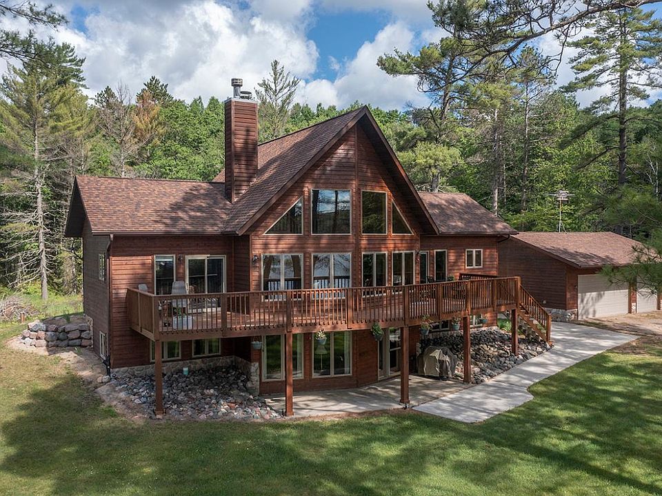 This well-loved & well-cared for home embodies the ideals of Northwoods livinggorgeous views, peaceful & secluded where the scenery & sunshine are your closest neighbors. Youll have 390+ feet of sandy frontage on beautiful Camp 12 Lake. Wake up & enjoy stunning sunrises from your bed or start your day with coffee on the deck. With living areas on 2 floors, theres plenty of room for family & friends to gather or to retreat. Each level offers a wood burning fireplace for cold winter nights. Set up a game or craft room in the lower level. The loft has gorgeous views & is ideal for a home office. The pole building offers great toy or equipment storage & the 3-car garage is heated making it perfect for projects! The lot is level with easy lake access for kids of all ages. Wildlife is abundant here & the fishing is great as well! Year-round adventures wait just outside the door! Serene & private, yet close enough to town for convenience, this is the place youll love to call Home