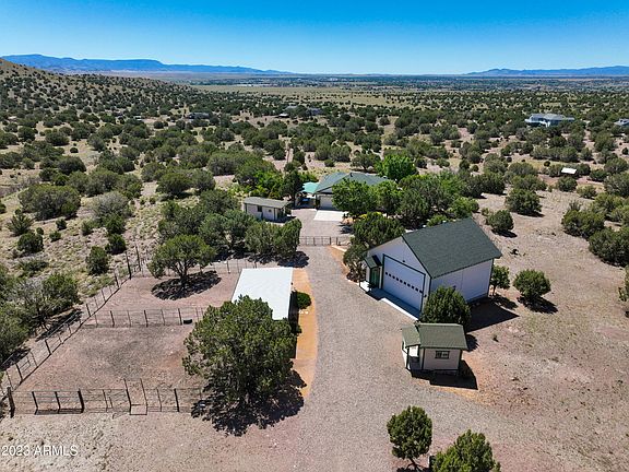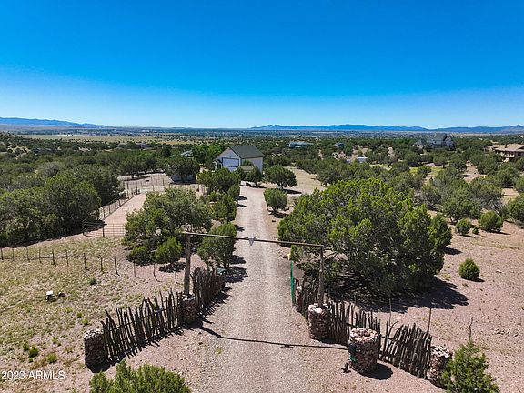 Immaculate Chino Valley Home and Horse Property! Situated on 7.29 acres in the rolling hills of west Chino Valley. Gated Entrance leads to the Beautifully updated home with fabulous views. 1500+ sq ft, 3 bedrooms, 2 baths, 2 car garage. Kitchen includes satin granite counters and tile backsplash, updated appliances. Great Room opens to covered patio and Salt Water Spa, Newer Roof, tile flooring, interior paint, fixtures and lighting. Mini Splits HVAC, Tankless water heater, water softener. Exterior features: RV garage w/loft, 2 Stall Barn, with paddocks, tack and hay storage, riding arena and 3 acres of fenced turnout. Detached Hobby/Guest room with HVAC, Dog run, dog house, outdoor screened cat room. Detached Tack Room with electricity. SEE FEATURES LIST !
