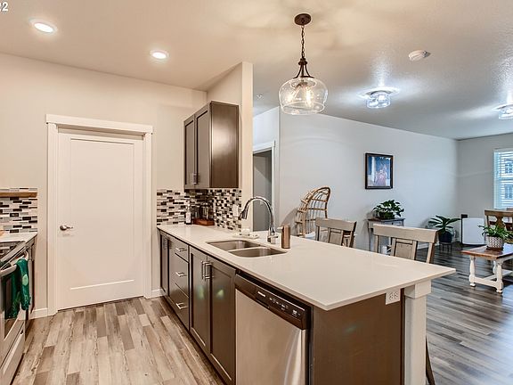 Immaculate 1-level condo on the top level with luxury faetures of quartz counters, stainless appliances, vinyl floors, private deck w/a view, private storage & garage all in the Wilsonville school district.