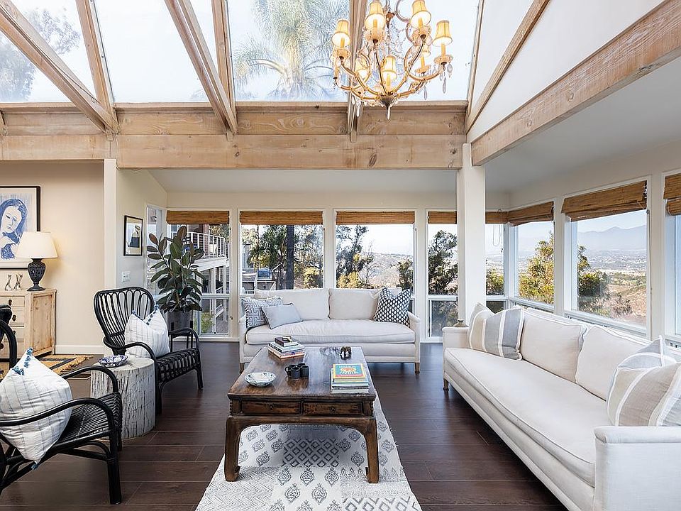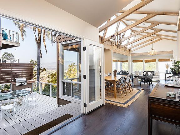 This beautiful home in Top of the World neighborhood offers panoramic mountain and valley views for your enjoyment of magical sunrises, sunsets and city lights. Soaring open beam ceilings with skylights create a light and expansive feeling throughout. Wrap around decks are perfect for outdoor living, including custom grill and dining table for ten. A master bedroom suite with a spacious walk in closet, and second bedroom, are located on the main level. There is a second master bedroom suite with fireplace, bathroom and walk-in closet on the lower level. A bonus room/home office/studio with breathtaking views and expansive deck space is also located on the lower level by its own entry. Enjoy the expansive yard, including multi-tiered beds for your own garden. Walk to school and hiking trails in this unique and peaceful setting. Call about pet. Refrigerator included. Washer/Dryer hookups. First showings will be at open house on Sunday 1/9/22 between 12pm-2pm. Mask required. Owner pays for gardener and trash collection.