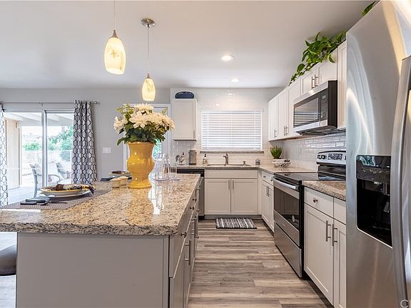 Welcome Home! This stunning 2 bedroom, 2 bath home is COMPLETELY REMODELED and MOVE IN READY.!!Located in the quiet 55+ retirement community of Menifee. MUST SEE! The kitchen has ALL new Cabinets with brushed nickel hardware, granite countertops with Kitchen island that is open to the living room and a Tile backsplash. New Stainless Steel Appliances includes: Refrigerator with Water & Ice dispenser, electric range/oven, microwave and dishwasher plus New garbage disposal, Pull down faucet and New sink. Modern recessed canned lighting and pendant lighting over kitchen island. The entire house has brand new LVP flooring, 4.5" baseboards, new paneled interior doors and New Front door. WAIT THERE IS MORE: newly painted walls & ceiling, New ceiling fans in living room and bedrooms,Faux wood cordless blinds, new screens,outlets, switches and breaker Panel. The 2 bathrooms have Brand new toilets,New tile floors, new vanities, decorator lighting, frameless medicine cabinets,decorator mirrors and accent tile banading.The Master bathroom has a brand new Walk In Shower, the hall bath has new tub/shower. Separate Large laundry room that accommodates full size washer/dryer, with storage cabinets and a window for natural lighting. Come relax on the covered back patio both the front & back yards are low maintenance and drought resistant yard.