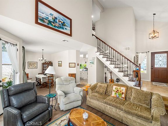Highly upgraded Mountain View Charmer is looking for a new family to love! NO HOA and NO MELLO-ROOS!! Located in the one of the most desirable areas of Santa Clarita this home offers approximately 1592 sq. ft. of living space, high ceilings, 3 bedrooms, 2 1/2 baths, formal dining, the spacious kitchen opens to the family room - currently being used for kitchen dining, and boasts Gorgeous natural white Quartzite Countertops with breakfast bar! There is timeless travertine flooring, extra pantry space, newer reverse-able blinds and the recessed lighting, ceiling fan and stainless appliances were all replaced in 2021. The laundry room is indoors, there is a whole house fan, the staircase and railing - 2 years new along with the bedroom ceiling fans, the mirrored wardrobes and the vinyl flooring throughout the upstairs. The Master has a beautiful walk-in shower and also offers high ceilings and both upstairs bathrooms have newer vanities, countertops, mirrors and lighting! The front door, back yard iron gate and fence including installation of brand new UV Double-paned windows and screens throughout all 2 years new! This property has been well maintained and you feel it when you walk in the front door. The trees and foliage surrounding the property were thoughtfully picked out some with help from a local professional in an effort to plant as many heat tolerant plants and trees as possible. Close to restaurants, schools, shopping, public transportation and more...this property is simply a Must See!!