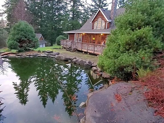 Incredible home with exceptional piece of very usable property. Over 1800 square feet with 3 bedrooms 2 1/2 baths, hardwood floors, hickory hardwood cabinets, claw foot tub, wood stove insert, heat pump, high vaulted ceilings, canned lights, bay windows, cedar lap siding, wrap around covered deck, all appliances including matching washer, dryer all on 10 acres, with a large man made swimming pond, a 12X36 run in horse shelter, 12X48 pole building, separate studio detached 2-car garage, separate in-law quarters 1992 12X35 park model wood sided, comp roofed 1 bedroom 1 bath home.