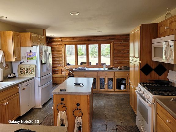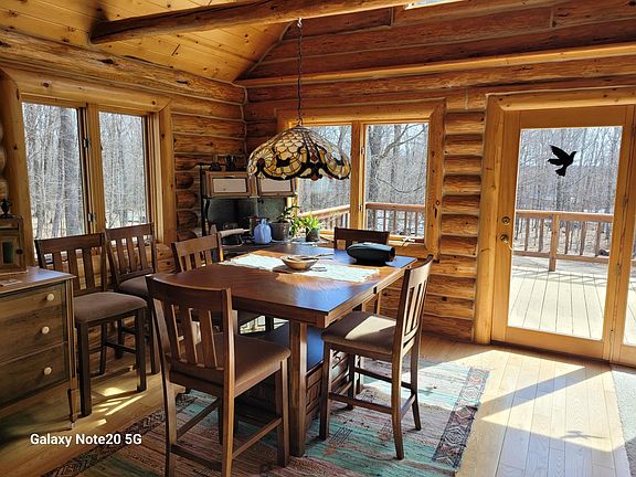 Custom built log home on 7.5 acres of mostly hardwoods. A one of a kind find in Sugar Camp. A massive stone fireplace greets you when you walk through the doors. Open concept with generous sized rooms. Large, fully applianced, U-shaped kitchen. Oversized primary bedroom with 3 walk-in closets. Finished lower level with a walk-out from the family room, a bedroom and a one-of-a-kind cowboy bathroom. The wrap around deck has excellent views in all directions. Large, heated garage plus a full workshop. The rolling acreage features many maple trees offering an ample supply of maple syrup in the springtime. Big fenced in garden with a mature asparagus patch. Hunt those big bucks right outside the back door. Convenient location between Rhinelander and Eagle River. Lots of the Great Northwoods feel to the home.