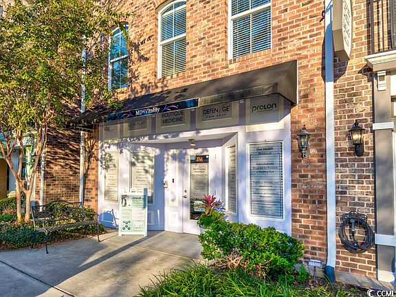 Rare opportunity now available to own one of the popular work/live end unit townhomes at the highly sought after community, Market Common. The commercial storefront is approximately 650 sq ft and is currently occupied by a medical business. The unit offers a half kitchen and bath. Floors two and three are a 3BR/2.5B townhome offering laminate and tile flooring throughout, granite countertops and breakfast bar. All three bedrooms are located on the third floor. This unit is just a couple blocks away from the heart of The Market Common, which offers endless dining, shopping and recreational options. It's also a short drive to the beach and airport. Make an appointment today!