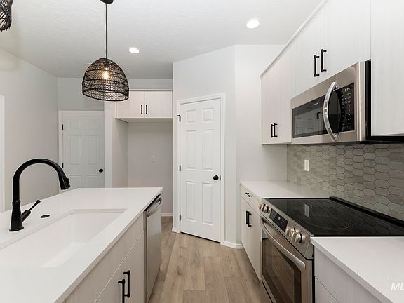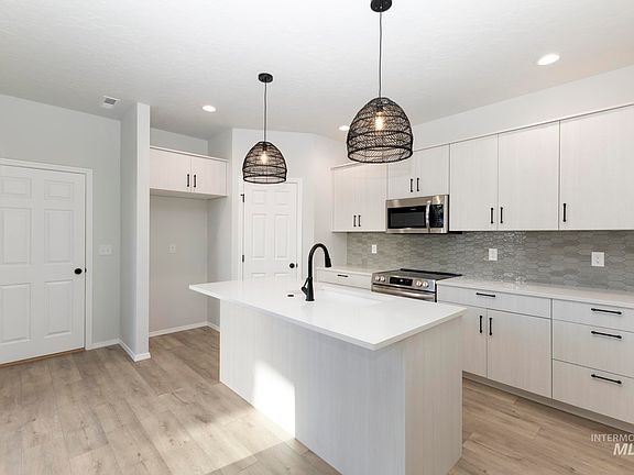 This new home located in beautiful Kuna, Idaho has all the comforts you need & more! Cozy up to low-maintenance living in the Boulder 1563! The main level offers an open floor plan where the living room, dining area, and kitchen flow seamlessly. The kitchen comes with stainless steel appliances and stylish solid surface countertops, adding both functionality and aesthetics to the kitchen. A side patio off the kitchen helps blend outdoor and indoor living so you can make the most out of pleasant weather. Head upstairs to find all 3 bedrooms and a centrally located laundry room. The primary suite enjoys an abundance of natural light, spa-like en suite bathroom, and a spacious walk-in closet. Photos are of the actual home!