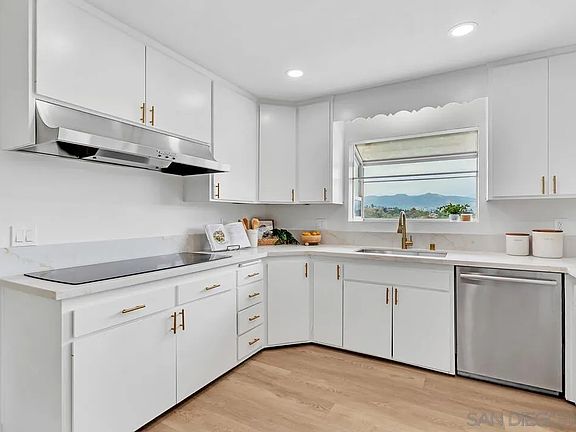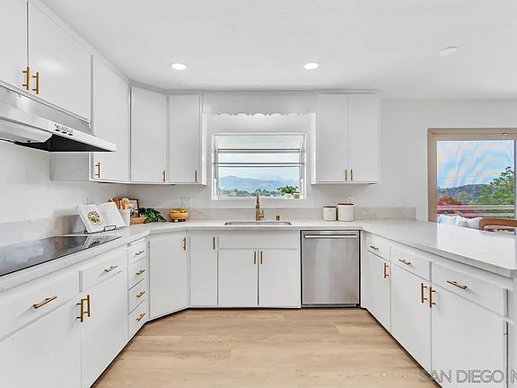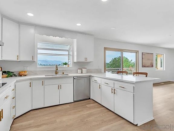 Perched on a full acre in Jamul, this home offers panoramic views of the surrounding natural beauty. This property lives like a single-story with a large entertaining main living space downstairs. Wake up to breathtaking sunrises over the lower valley and take in panoramic views of natural landscape and Lyons Peak from your kitchen window, primary suite, and beautifully usable yard. This newly renovated 3 bed, 2.5 bath home sits on a full acre with space to grow—whether you envision an ADU, a stunning in-ground pool and spa, or your dream outdoor oasis. Step inside to an open-concept layout featuring a freshly painted interior, stylishly refreshed kitchen with quartz countertops, gold hardware, sleek new lighting, and reimagined cabinetry. The inviting family room centers around a charming country-style brick fireplace, creating a warm and welcoming space to gather. New luxury vinyl plank flooring flows throughout the main living areas, while all bathrooms have been updated with new vanities, mirrors, lighting, and modern finishes. Enjoy energy savings with solar, a refreshed landscape for curb appeal, and an above-ground pool to cool off while you plan your next backyard upgrade. With views, space, and upgrades throughout, this property offers the perfect blend of modern comfort and rural tranquility.