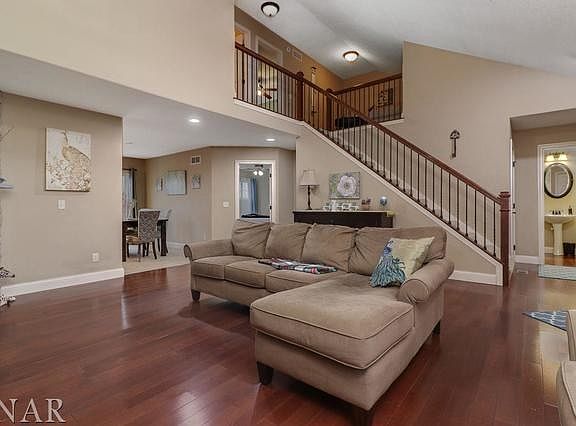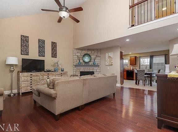Two story family room with stone surround fireplace.Beautiful kitchen with maple cabinets w/cherry finish, granite counter tops. Brazilian Cherry floors. Daylight windows in basement.