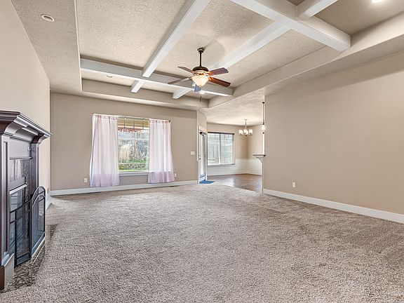 Take a look at the location on this 1,800 sq. ft. 2010 built home. Easy access to many areas and the home has a great floor plan with 3 bedrooms and 2 baths. The kitchen is large with a spacious peninsula, granite counters and stainless appliances. Home has 9 ft. ceilings with a coffer and decorative beams in the living room. The primary is vaulted and is quite capacious with a large walk-in, double vanity and granite counters as well. Out back, facing east, is a large, covered patio and a spa. There is a nice RV parking area that would accommodate a sizeable vehicle. This home has a few bumps and bruises but is a great value just waiting for your loving touch.