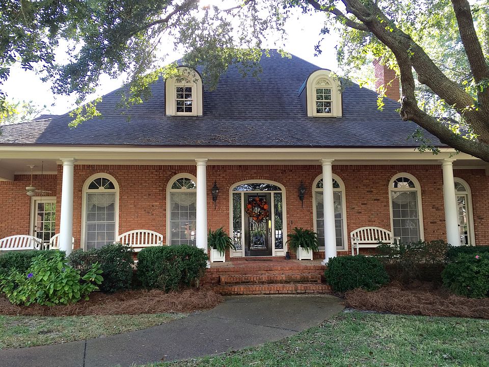 Two story brick, traditional, large wide wrap around porch, with many extras. I.e., garage apartment, 2 fireplaces, granite countertops, build in bookcases, hardwood floors, crown molding, 10 ft. ceiling, pool enclosure, and brick fence.
