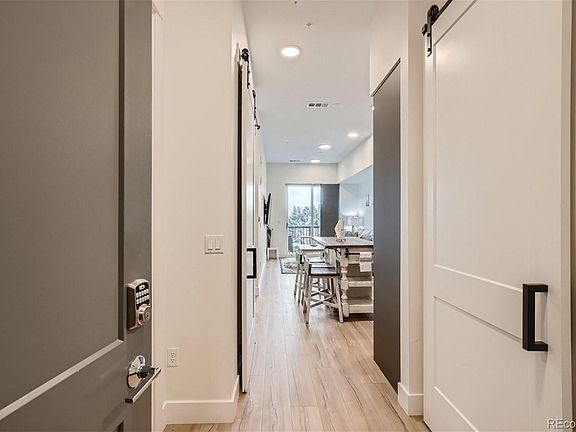Stunning, modern, new 2 bedroom/1 bath unit in beautiful Aria Zen Community. Wait until you see this upgrade package! This 2nd floor property offers mountain views with wide plank floors, quartz counters, gorgeous shaker cabinets with soft close cabinets and drawers, floating shelves, large primary bedroom with a walk-in closet The second bedroom with door and closet is perfect for a study or guest room. The spa-like bathroom offers high end finishes, adjacent to the primary bedroom and living space. The in-unit laundry with brand new washer and dryer is conveniently located in utility space near the front door. Large patio with mountain views and natural gas line for a BBQ. Unit comes with underground parking spot and its own electric charging station (included). This building is urban contemporary with 10 foot ceilings, 8 ft doors, large windows, secured parking garage, elevator, yoga room, community room, dog wash area, community garden and green house. Walk to Starbucks, nails, bank and University of Regis. Large park around the corner and short distance to Berkley park. Short drive to Denver culinary hot spots off of Tennyson street and The Highlands. One mile to Federal Clear Creek light rail station and perfectly located between I76 and I70 for easy access to Downtown Denver AND the foothills. The new furnishings, professionally decorated are negotiable. Kitchen bar stools at island are included. **Photo of parking spot is only a visual representative of space, actual parking spot is #42**