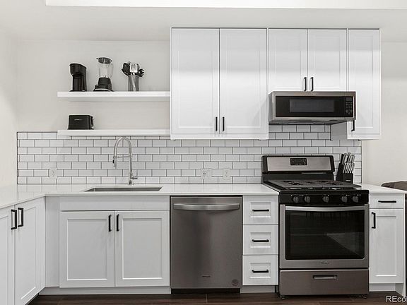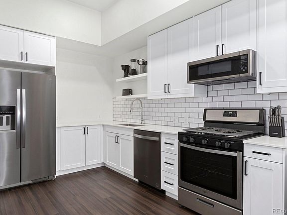 Sleek and stylish, this first-floor condo at Aria Zen Condos brings modern living to the heart of Berkeley. Built in 2022, it features an airy open layout with 10-foot ceilings, 8-foot doors, and expansive windows that fill the home with natural light. The kitchen shines with quartz countertops, stainless steel appliances, and a classic subway tile backsplash, while the primary bedroom includes a walk-in closet and remote-controlled blinds, a $3.5k upgrade. A second bedroom provides flexible use as a study or guest space, and the spacious bathroom is finished with chic tile floors and a deep soaking tub. Additional highlights include in-unit laundry with a full-size washer and dryer, a walk-in pantry behind a modern barn door, a reserved parking space in the secure underground garage, and a dedicated storage unit. The building elevates daily living with amenities such as a yoga studio, pet wash, bike storage, garden, and community room. Perfectly positioned for both city and outdoor access, this condo is just minutes from downtown Denver, Regis University, Starbucks, and neighborhood favorites on Tennyson, The Highlands, and Lowell. With convenient access to I-70, I-76, and I-25, Aria Zen Condos combine lifestyle, location, and modern design. Buyer/Buyer's agent is responsible for verifying all information, measurements, schools, and HOA rules/fees/regulations.