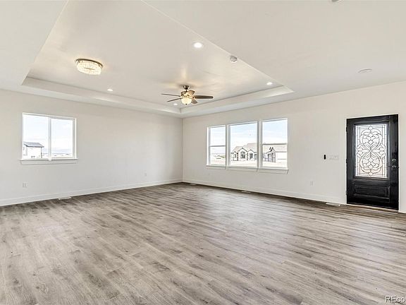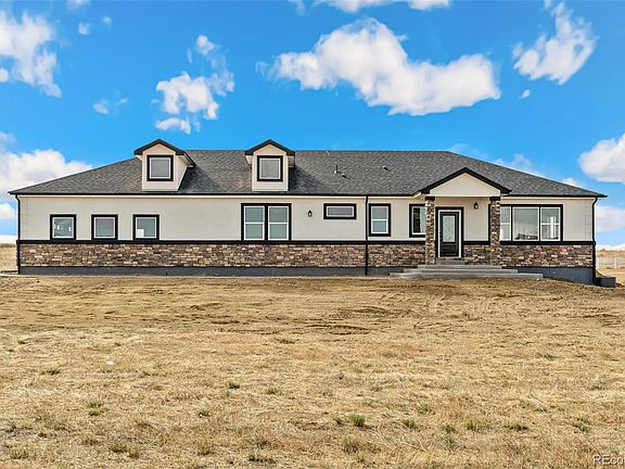 NEW CONSTRUCTION! This stone and stucco ranch style home is located on 2.5 acres in the new Ridgeview Estates subdivision, located just a few miles east of Brighton. Enjoy the peace and quiet of your new home while enjoying the stunning mountain views! The oversized kitchen has access to the back deck, and has quartz countertops, kitchen island, all stainless appliances, pantry, and an abundance of cabinets for lots of storage. Many large windows bring lots of natural light inside the home. The oversized 3-car garage is big enough for your oversized pickup truck, and is fully finished, textured, and painted. The partial basement has a stub-in bath, and is ready for your personal finishes. With Residential Estates zoning, outbuildings are allowed if you'd like to build your own private shop. An Assessory Dwelling Unit is also allowed, confirm with Adams County zoning regulations. Horse property! 4 horses are allowed per lot; all lots in this area have access to ride within the equestrian easement. The HOA does not have very restrictive covenants and predominately follows the County regulations for RE zoning (see attached covenants). Water tap is with Great Rock Water (not a well). Natural gas is installed, and Comcast cable is available for wired internet and cable TV. Call today for your private showing!
