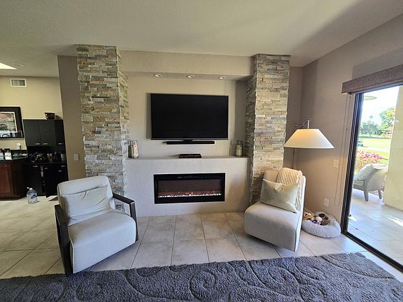 Welcome to your new oasis! This incredible 3-bedroom, 2-full-bath condo has been meticulously remodeled to offer the ultimate blend of comfort and style. Nestled on a highly sought-after street, you're just a stone's throw away from a top-notch fitness center, tennis courts, and a leisurely stroll to the Clubhouse. Steps to (2) pools. Picture yourself in the spacious eat-in kitchen, whipping up family meals, while the stone built-in electric fireplace sets the perfect ambiance for cozy nights in. The remodeled baths add a touch of luxury that you won't want to miss. With stunning west-facing views of the Cielo 9 green and the majestic San Jacinto mountains, you'll be treated to breathtaking sunsets that will leave you in awe every evening. This condo isn't just a home; it's a lifestyle waiting for you! HVAC installed 2018, Water Heater 2019. Land Lease Extended to 2069, monthly ground rent $215.89The Desert Princess has an affordable 27-hole PGA Championship golf course, no Tee-time lotteries, no initiation fees, rated among the best in the valley by GOLF DIGEST. This quiet community is away from the noise yet minutes from everything that is in Palm Springs; restaurants, shopping, casinos, an international airport, the Tramway, Art Museums, Theaters, Acrisure Arena and the Street Fair.