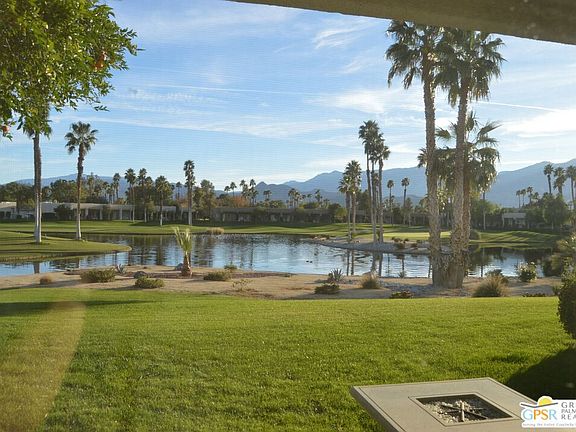 LOCATION, LOCATION, LOCATION. May be best location in entire resort. Very private, end of cul-de-sac. Golf course on opposite side of large pond, no golf traffic behind unit. Beautiful and peaceful views. Upgraded and remodeled one bedroom, 2 full bath condo with gorgeous views of golf course, pond with fountain and mountains. Sit on private patio, sipping a beverage and watching the golfers on Lagos 3 across the pond. Completely remodeled kitchen with new cabinets and newer appliances. Overhead storage in garage. Private gated front patio and golf cart parking. Remodeled baths and newer furniture make this a dream vacation rental or get-a-way! Master king bed features motorized adjustable base, Located on a quiet cul-de-sac in Desert Princess Country Club, makes this a great find. Owner is high end Interior Designer and had put her touches throughout. Crown and base molding throughout . Land lease expires 2069. The Desert Princess community has an affordable 27 hole PGA Championship golf course, no tee time lotteries, no initiation fees, and is rated among the best in the valley by Golf Digest. This quiet community is away from the noise yet less than ten minutes from Palm Springs International Airport. It is close to everything in Palm Springs that is fun!... Restaurants, shopping, casinos, street fair, museum and Tramway. 33 swimming pools, 10 Tennis Courts, Health and Fitness Center.. Buyer to verify all info.