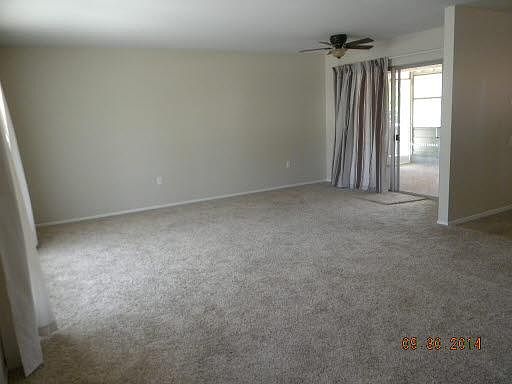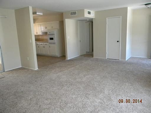 Come see this wonderful 2 bedroom senior home located in the heart of Sun City. It features all new appliances such as a stove, dishwasher and microwave. The kitchen is quaint, with all updated appliances with the exception of a refridgerator. Kitchen includes granit countertops, and tile flooring. The rest of the home is carpeted. Livingroom is large and open. Laundry room is located in the little room connected to the home outback. Both the front and back yard are low maintenance with rock. Come see this wonderful home ready for you! Close to 215 freeway and shopping centers.