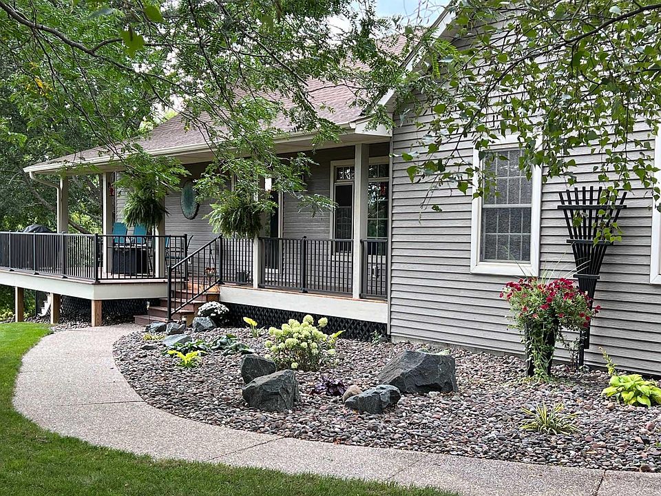 IMMACULATE! Ranch home overlooks rolling hills, beautiful landscaping. Secluded 22+ acres adjoins Co. Park. Professionally renovated “top-to-bottom” one-level living, w/o basement. Gourmet kitchen, open concept, over-sized island, custom cabinets, new appliances, cozy living area, woodburning stove. Family room w/valued ceilings, gas fireplace adjoins half bath, laundry room. Patio doors, “kitchen & family room,” open to back yard, fenced, beautiful landscape. Entire home pro-updated w/Marvin doors/windows, (north side), new decks, black railings, gutter guards. Master walk-in closet, walk-in shower, jetted tub, heated floors. Second BR w/adjacent full bath. Lower-level w/o, 2 BRs, bathroom, office, storage. Half unfinished. Additional structure 40x40, heated/cooled, attractive entrance framed in stone, accent lighting, awnings, epoxy floor, ceiling fans. Perfect for studio/business. Other half, horse stalls. Outside black powder coated/chain-link fencing/black cable, waterers, hydrant