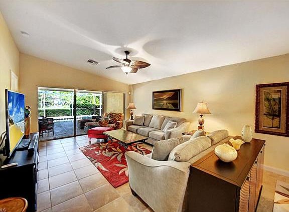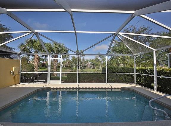 Rarely available Carrington floor plan offers 3 Bedrooms/ 2 Bathrooms, a heated salt water pool and lanai West exposure. Recently installed tubular skylights provides a very bright kitchen area. Laundry room with sink and a two car garage. For peace of mind the home is protected with electric hurricane shutters in the lanai and clear Lexan panels on all windows. UV light system on the HVAC improves indoor air quality. Village Walk of Bonita Springs offers a beautiful Town Center, a lap pool and a resort style pool, tennis, basket ball, restaurant, even a post office and gas pump, a full time activity director and much more residents appreciate and enjoy living in this beautiful community. Miles of bicycle and walking paths with beautiful scenery all around. Lots of TLC thru the years on this home now ready for new owners.