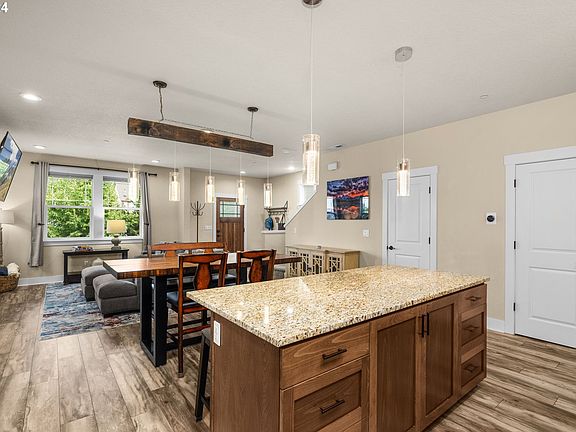 Great open concept in the desirable Villebois community! This corner lot sits high for maximum views. The home features modern elegance with new luxury laminate flooring throughout the main floor and a cozy gas fireplace. For added convenience, it boasts new smart home features. On the second floor you'll find all four bedrooms with new carpet and extra thick padding and new tile in the laundry room and bathrooms. Don't miss the two car-garage with ample space for your cars and storing all your toys! This 4-bedroom, 2.5-bath home is just a short block from the pool, gym, community center, amphitheater, and near Lowrie Elementary School. Enjoy watching the sunrise each morning from your expansive front porch with stunning views of Mt. Hood. Experience the multitude of parks, paths, and play areas that Villebois has to offer. The HOA includes amenities such as a gym, pool, clubhouse, dog parks, skate parks, and more!