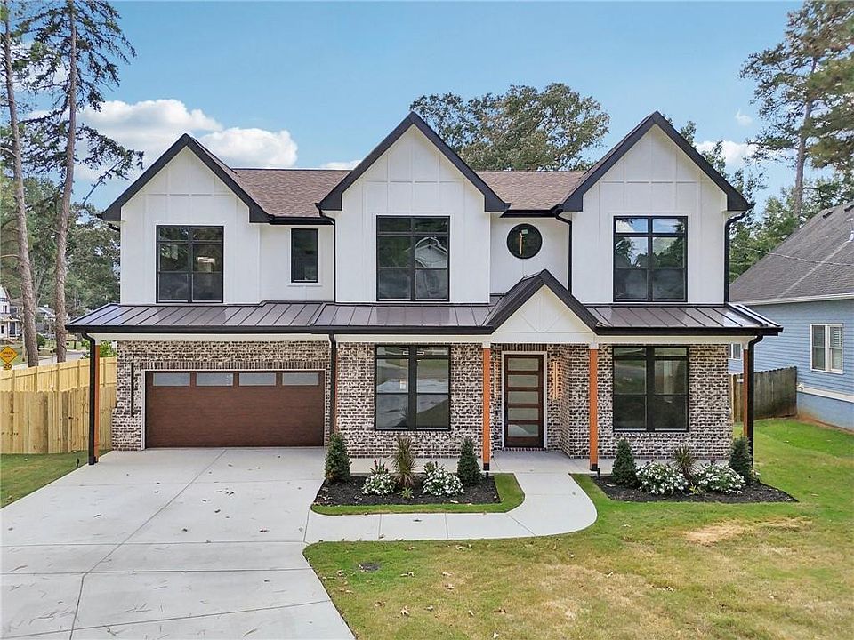 Experience modern luxury in this newly built custom farmhouse, blending high-end design with smart home technology! Situated on a prominent corner lot with no HOA, this residence offers nearly 3,560 sq ft of sophisticated living in a prime Atlanta location. With 5 bedrooms, 4.5 baths, and a versatile bonus room, the layout includes three owner’s suites—one on the main level and two upstairs—each with spa-style baths and generous walk-in closets, including a California-style primary closet. Highlights include soaring 10-foot ceilings & 7-foot windows, walnut hardwood floors, two-story foyer, formal living and dining, and a chef’s kitchen with quartz counters, statement island, smart Forno appliances, 48" stove w/ pot filler, custom cabinets, and bold finishes. The kitchen opens to a family room with fireplace and a keeping room overlooking the covered porch and fenced backyard retreat with pergola. Additional features: dual laundry rooms, designer lighting, 8-foot doors, raised back porch, security system, and seamless indoor-outdoor living. Other upgrades include fully insulated garage, and smart home system including locks, HVAC, and 2 smart toilets for a 5-star experience. Conveniently close to East Lake Golf Club, downtown and midtown, MARTA, and top Atlanta attractions. Don't miss your opportunity to tour this home today!